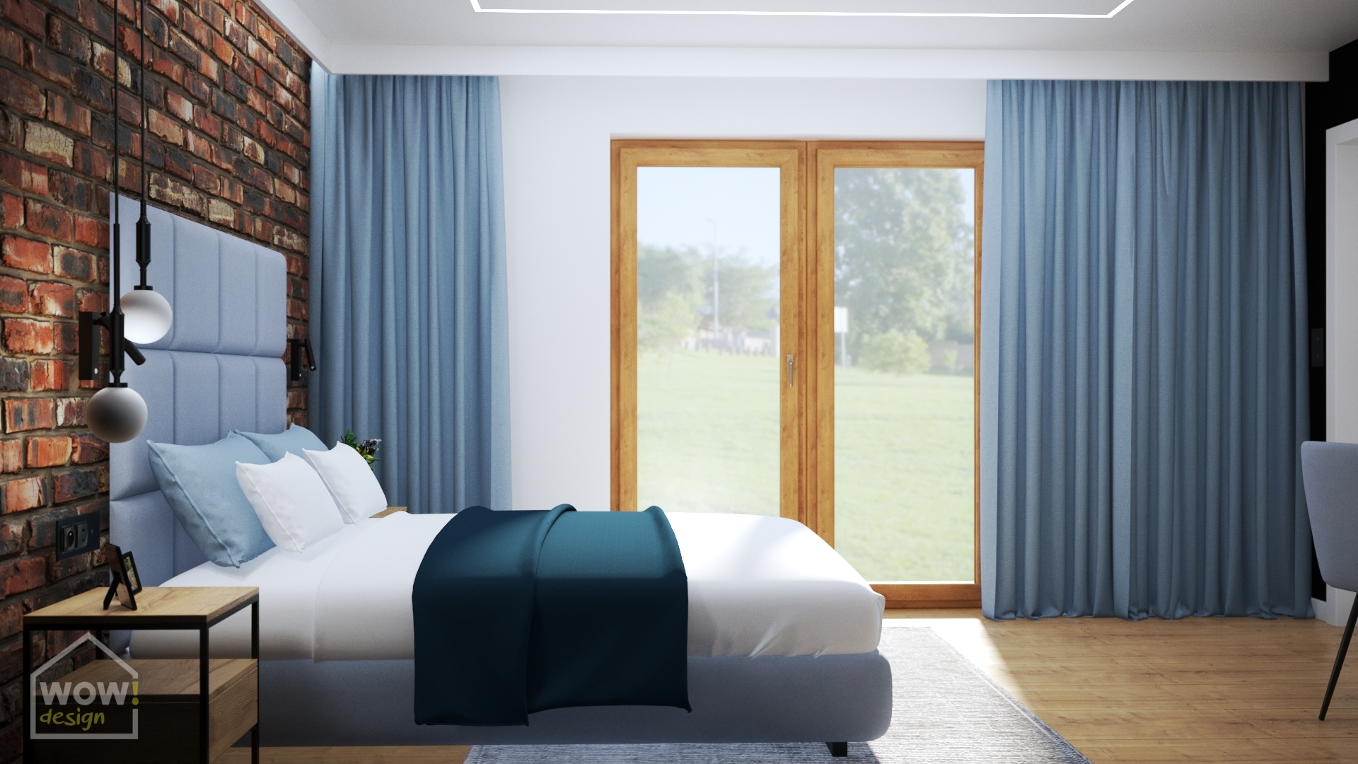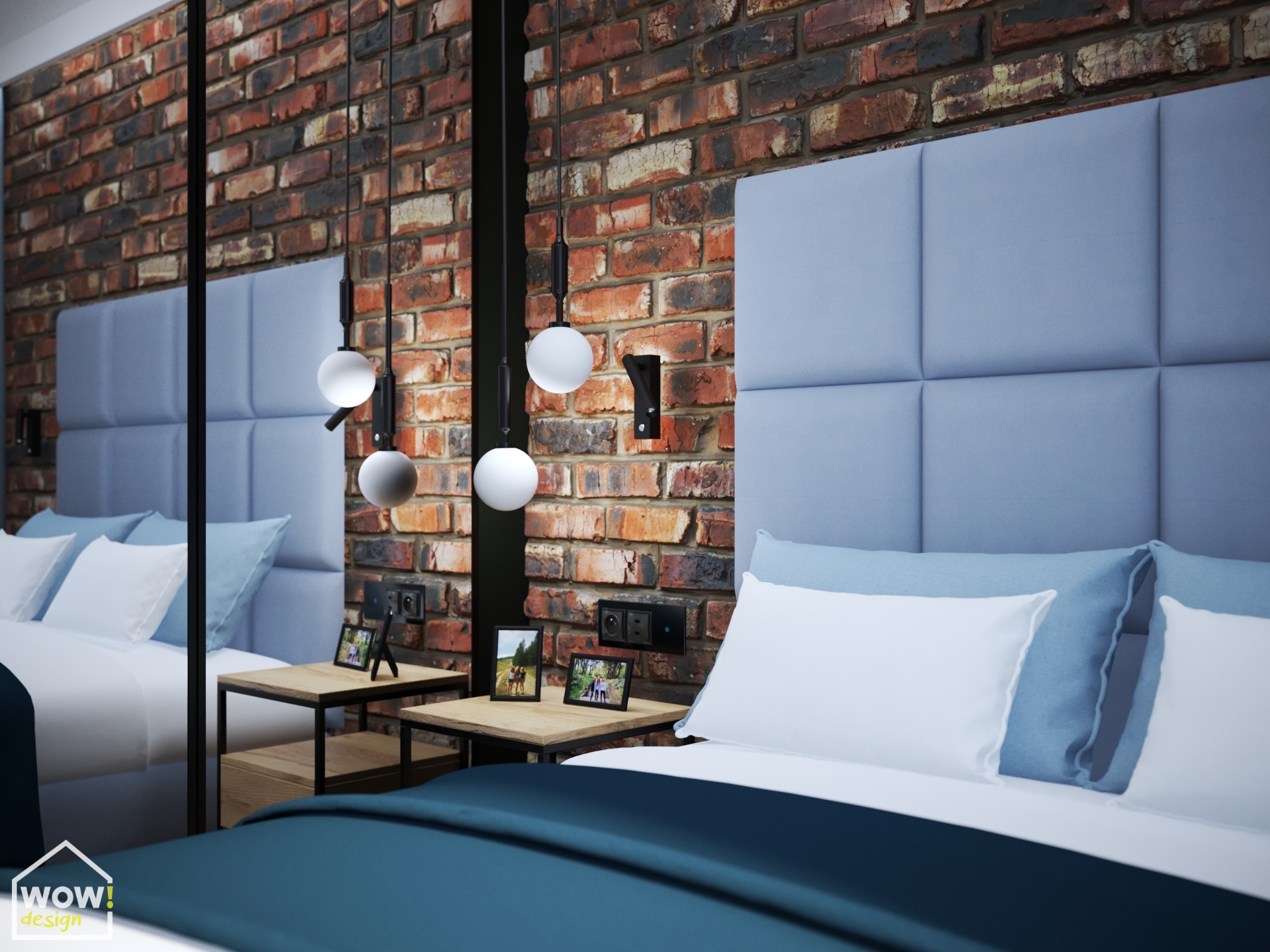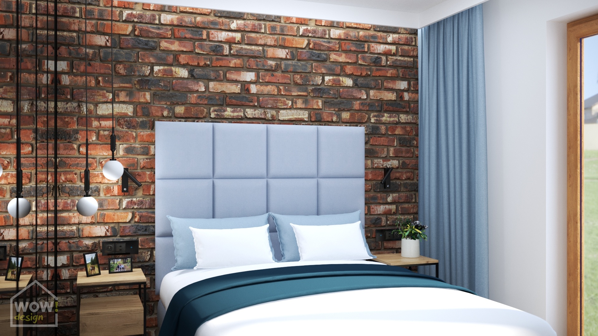 Sypialnia to miejsce, w którym mamy czuć prywatność i komfort. Ta urządzona w klimacie industrialnym wbrew mitom jest także przytulna, a to za sprawą podłogi i drewnianych frontów za którymi znajduje się garderoba a także dywanu, zasłon i innych tkanin np. weluru, który jest widoczny na wysokim zagłówku łóżka. Toaletka spełnia dwie role- służy do zrobienia makijażu, ale i jest pomocna przy pracy w domu.